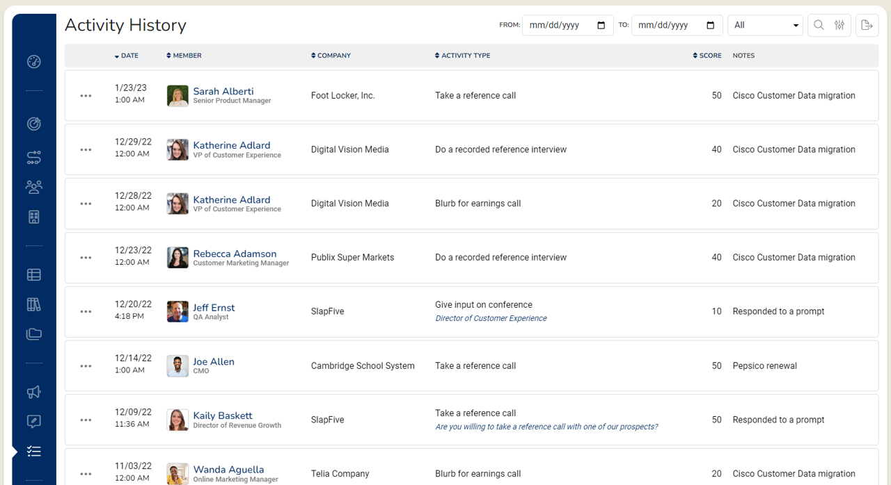 - Show a leaderboard of advocates ranked by Engagement Score.