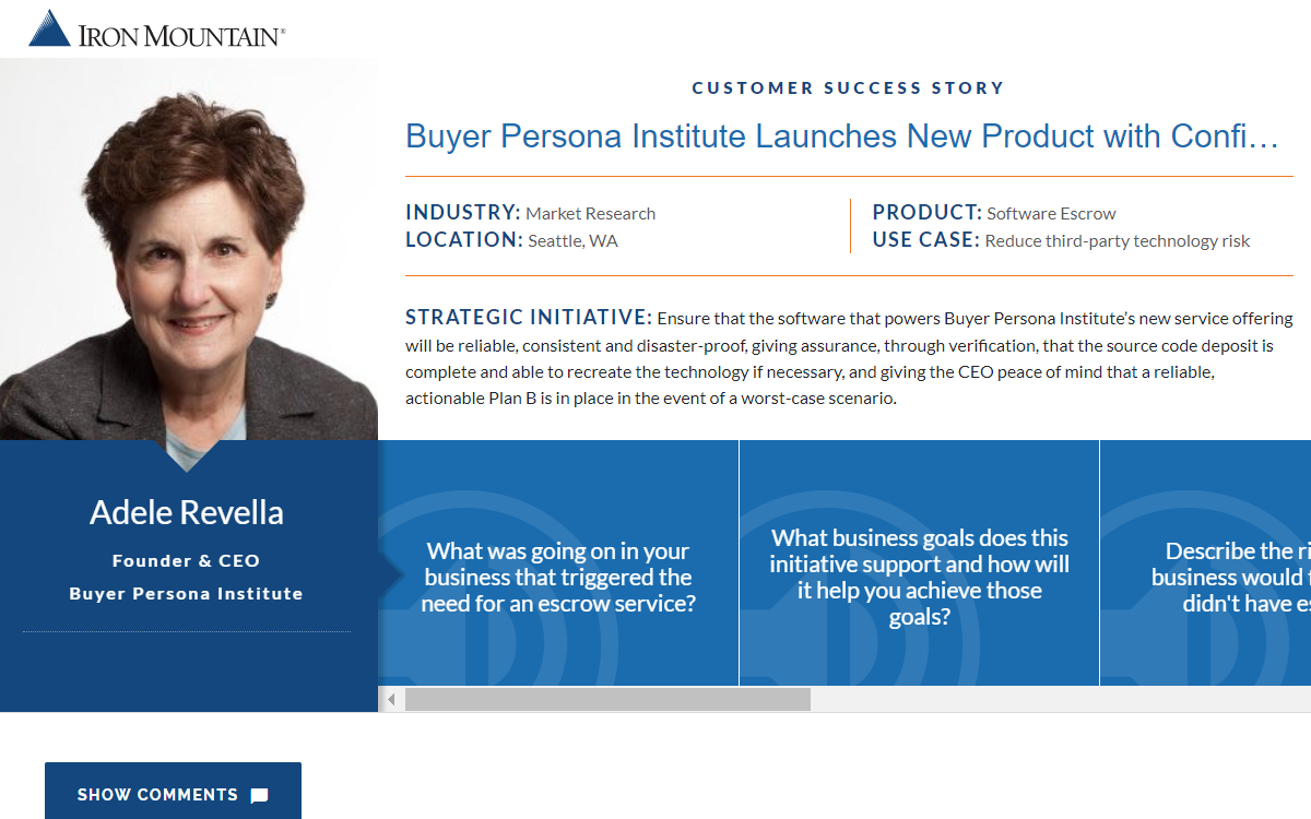 Iron Mountain uses authentic customer voice to create urgency for its software escrow services and prove the need for add-on code verification services.
